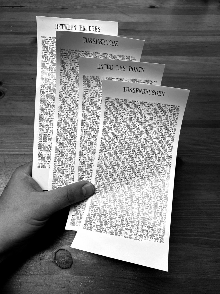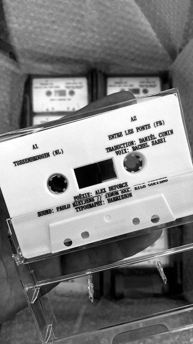One cassette with all four versions, and 4 stickers (with the entire poem, in Dutch, French, Brusseleir and English).